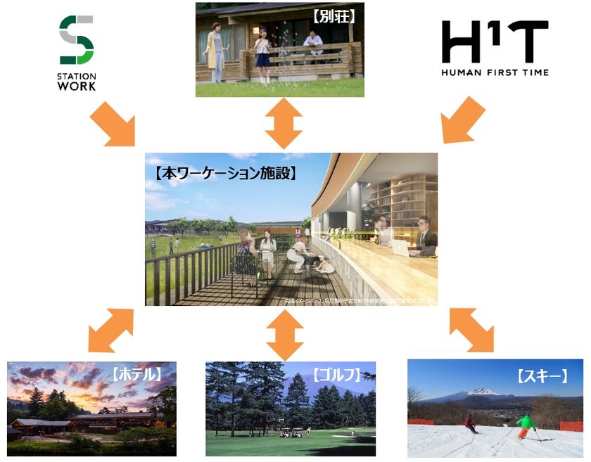 野村不動産が展開するサテライト型シェアオフィス事業「H1T」と、JR東日本が展開するシェアオフィス事業「STATION WORK」の協業により、都心のオフィスワーカーがワーケーションを体験する契機をつくるとともに、両社が持つシェアオフィスサービスの強みを本プロジェクトに活かします。軽井沢でのリゾートライフを満喫しつつ、集中して仕事ができる、都心におけるシェアオフィスの利用シーンと軽井沢における利用シーンの接点の核(コア)となる場所を提供します。