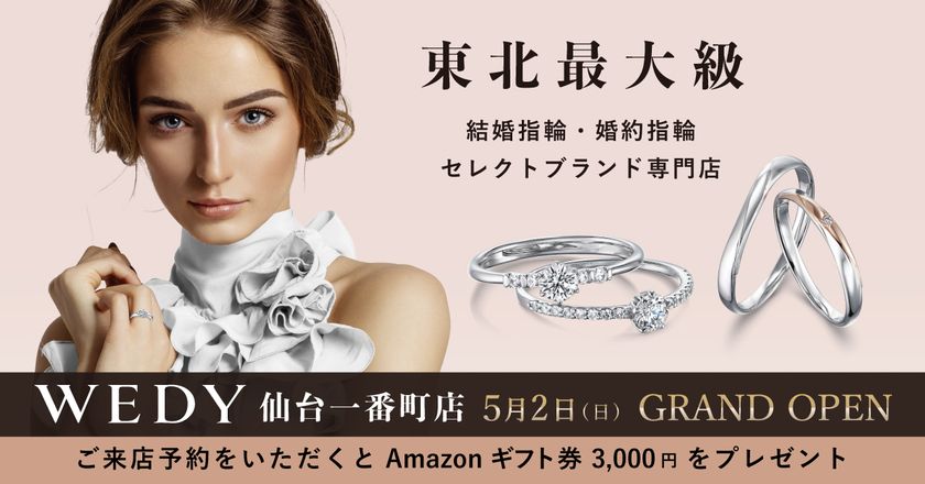 「WEDY(ウェディ)仙台一番町店」では、グランドオープンを記念して、5月2日(日)よりオープニングフェアを開催。