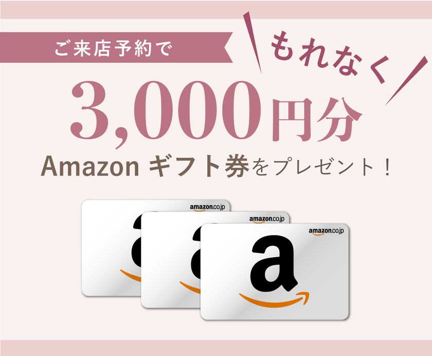 フェア期間中に、「WEDY(ウェディ)仙台一番町店」にWEBよりご来店予約すると、もれなく3,000円分のAmazonギフト券を進呈いたします。
