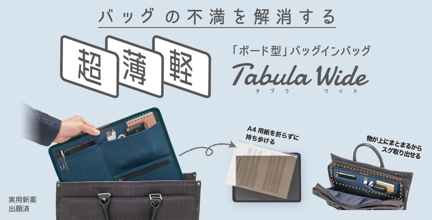 バッグの不満を解消!“超薄軽”バッグインバッグ「Tabula Wide」をMakuake(マクアケ)にて4月27日(火)12時にリリース!