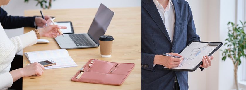 また、背面は硬質のファイル機能付なので書類が折れることなくきれいに収納できます。