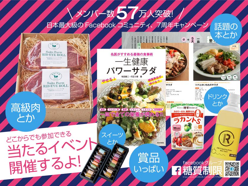 ゴールデンウイーク特別企画【春のローカーボフェスティバル】開催 話題の書籍や高級牛肉など豪華賞品が200名に当たる!コミュニティ57万人突破・「糖質制限」7周年記念キャンペーン