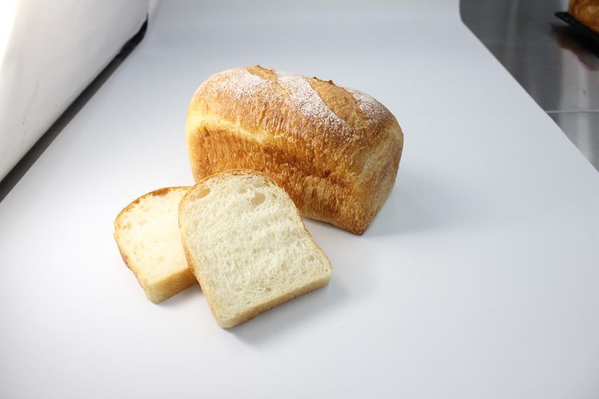 フランスパンに使われる小麦粉オーベルジュを使い作る食パンです。まるでフランスパンのような香ばしい香りが楽しめる食パンに仕上がっております。少しあたためてそのままで、または、軽くトースターであたためて、日々のご家庭でのお食事にもよく合います。