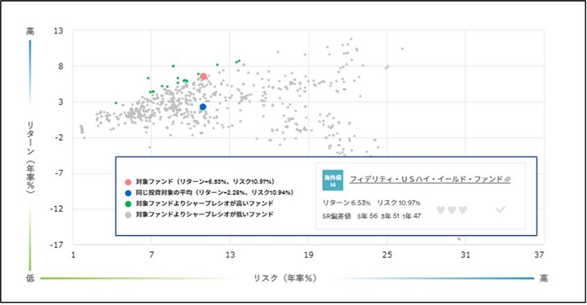 2. シャープレシオの高いファンドが視覚的に分かる「リスク・リターンマップ」
