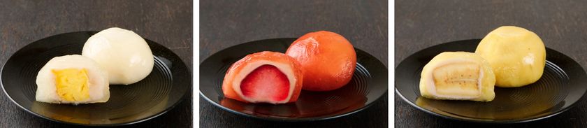 一般的なフルーツ大福の皮には求肥(ぎゅうひ:白玉粉や餅粉に砂糖や水飴を加えて練りあげたもの)を使用します。この求肥の味と香り、そして大福がくっつかないように表面にまぶしている餅とり粉(米粉や片栗粉、コーンスターチが原料)がフルーツ本来の美味しさを損なうことが問題でした。