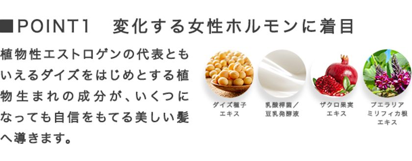 変化してしまう頭皮や髪の毛のお悩みに寄り添い、年齢に左右されない、女性らしさのための商品を多数展開しています。