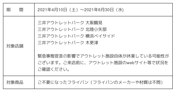 ■フライパン回収キャンペーンに関する詳細は下記サイトをご覧ください。