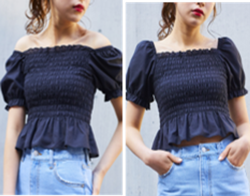 女性らしさたっぷりなシャーリングがアクセントの、お洒落見えする大人フェミニンなブラウス。夏にぴったりのオフショルダーでも、デザイン性のあるスクエアネックでも2WAYの着こなしが楽しめるトップスです。身頃のシャーリング仕様は適度にフィット感があり、細見え効果も期待できそう。韓国風スタイルの定番、パフスリーブで可愛さもアップ。ミニマムなサイズ感が、ボトムの長さを問わず、バランスよくスタイリングが仕上がります。