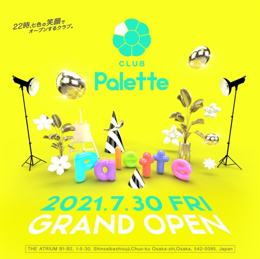 株式会社TryHard JAPAN(本社:大阪市中央区、代表取締役:大付 楽洋)は、プロデュースするナイトクラブ「CLUB Palette」を、2021年7月30日(金)に大阪市中央区心斎橋筋にグランドオープンいたします。コンセプトは「自分色で楽しめるクラブ『Palette』」。
