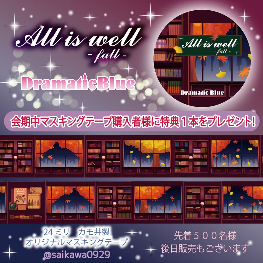 また、9月22日(水)〜26日(日)に4プラホールで開催する「DramaticBlueマスキングテープ展」で販売されます。