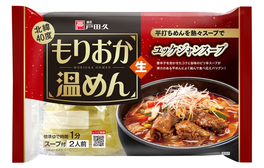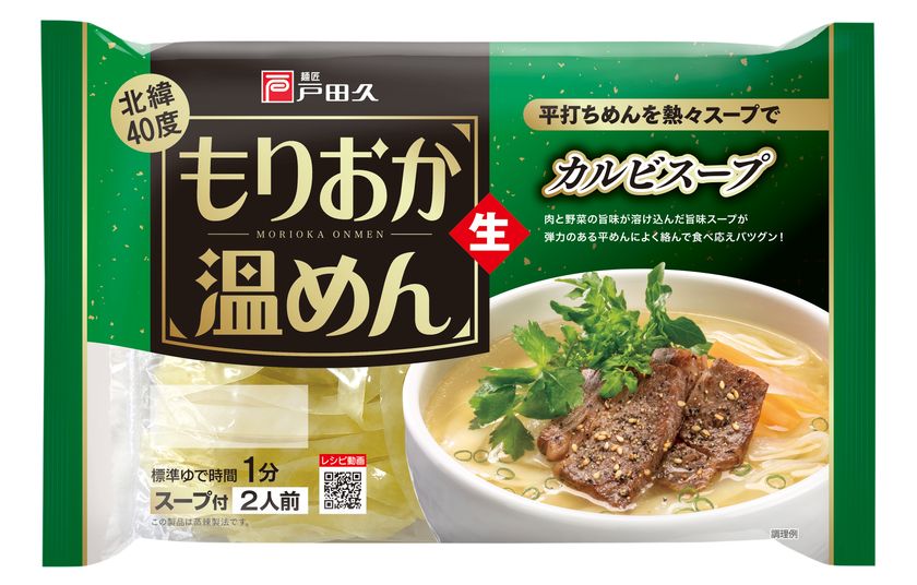 株式会社戸田久(本社:岩手県、代表取締役社長:川原 守)は、もりおか冷麺と同じ製法で作った、のどごしが良く弾力のある平打ちめんを熱々スープで食べる「もりおか温めん」を2021年9月1日(水)全国で販売します。ラインアップはあっさり旨味の“カルビスープ”と、こってりピリ辛味の“ユッケジャンスープ”の2タイプをご用意しました。