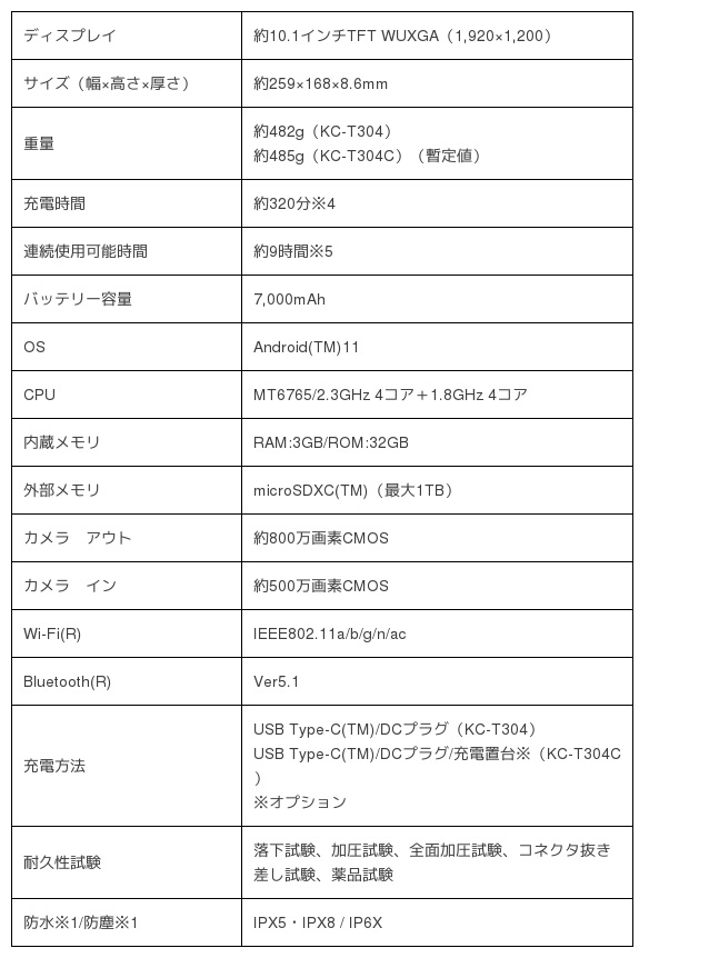 優れた堅牢性と便利な機能を兼ね備えたJAPAN MADE 法人向けWi-Fi(R)タブレット「KC-T304」「KC-T304C」※登場