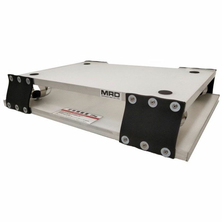 台車用防振台は、お手持ちの台車に載せるだけで台車を防振化することができます。市販の台車にぴったり収まる大型(幅600mm)・中型(幅450mm)の2サイズ展開。サスペンションには、メンテナンスフリー・特許取得技術の金属球状サスペンションを使用しています。台車を通常通り使用する場合に比べ、最大96.3%*の振動を吸収します。