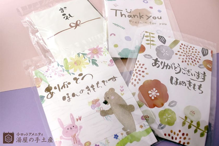 その為、粗品としてご使用頂く際に自らメッセージを添える手間を省く事ができます。