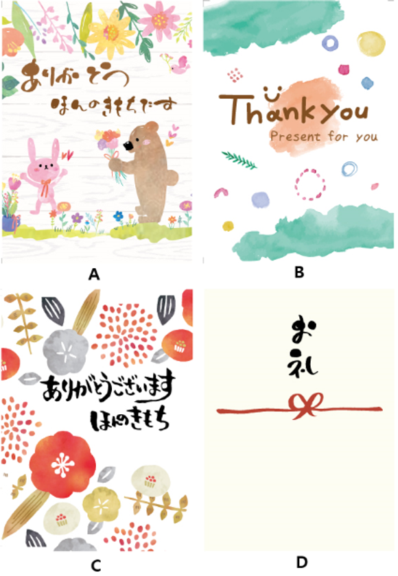 ■カードのデザインはA・B・C・Dの4種類の中から1種類選べます