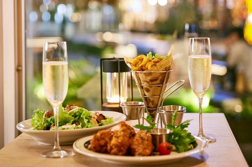 一面ガラス張りの店内は柔らかな自然光が降り注ぎ、都心にいることを忘れさせてくれるようなナチュラルな空間を演出。広々としたオープンテラスは植栽の緑に囲まれて、穏やかにお食事をお楽しみいただけます。さらにお待ち合わせやアペリティフ、ちょっと飲みたい時でも使い勝手がいいスタンディングスペースもご用意。フィンガーフードにぴったりなオイスタープレートやバッファローチキンをお供に、シェフがお勧めするオレゴン州産ワインで肩肘張らないリラックスしたひとときをお過ごしいただけます。