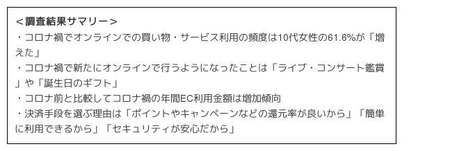 コロナ禍でオンラインでの買い物・サービス利用の頻度は10代女性の61.6%が「増えた」