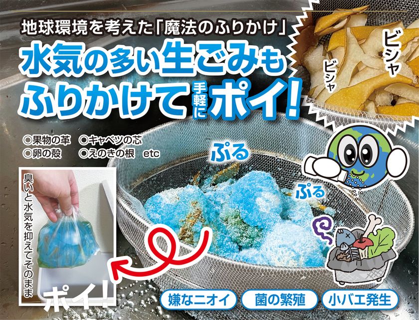 生ごみ、カップ麺の残り汁などを固める魔法の粉 『ふるだけ簡単ポイ!地球のふりかけ』が11月1日発売