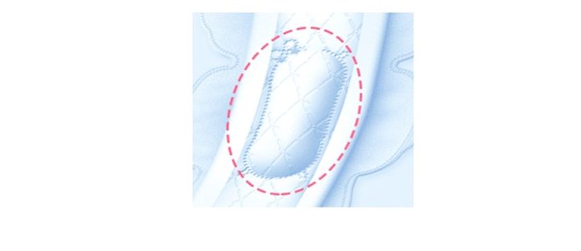ナプキン中央がぽっこりふくらみ、身体にフィットして吸収します。