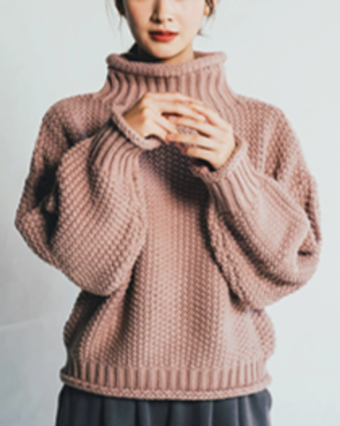 窮屈感のないゆったりとしたハイネックが個性的なざっくり編みの厚手のニット。近年、秋冬になると様々なブランドから発売されるチャンキーニットは完売も多い人気アイテムとなっており、着るだけで旬コーデ見えする優秀な1枚です。たっぷりとした袖や、ドロップショルダー、首元・袖口・裾のロールエッジ仕上げなど、可愛さとトレンドライクなスタイルが叶うエッセンスが詰まっています。使いやすいカラー展開とゆとりのある身幅が、着るだけでリラクシーカジュアルな装いに。