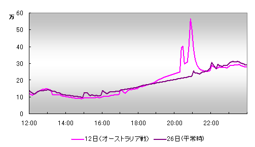図2.6月12日(オーストラリア戦)国内ツイート数推移