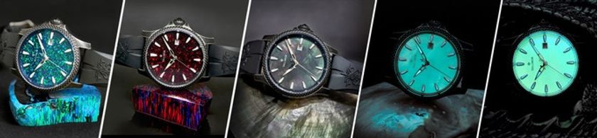 CAX01.A…グリーン 日本で1年以上管理培養した天然オパールを宝石のような輝きを放つ文字盤として使用
