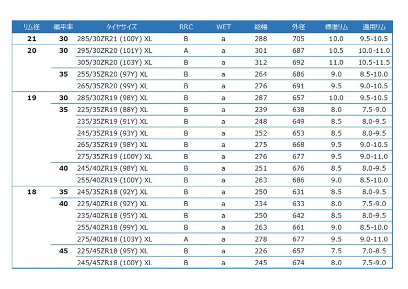サイズラインアップ 全20サイズ