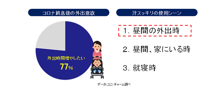 一方、コロナ終息後の外出意欲は約8割と高く、外出で汗をかく機会が増えることが予測されます。