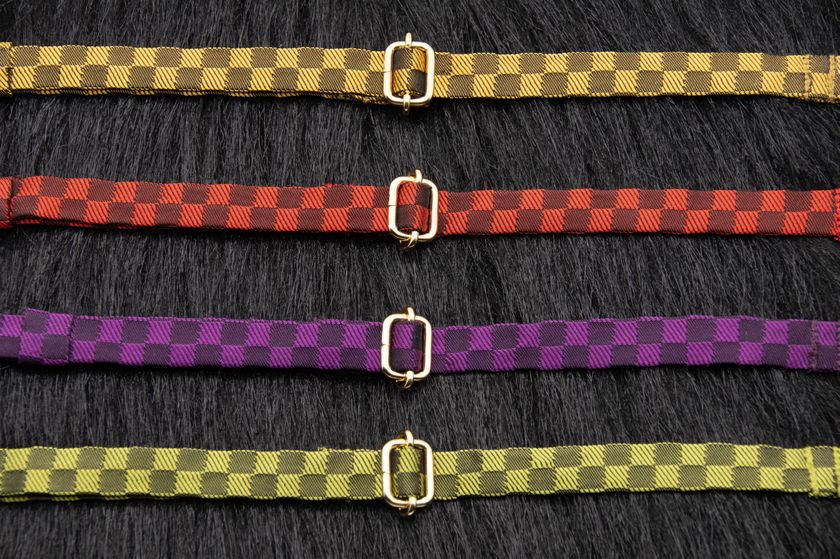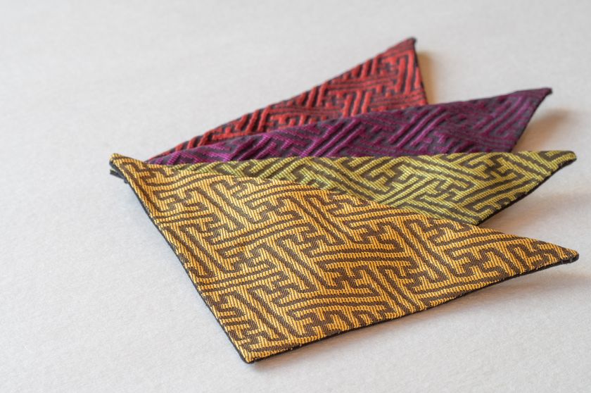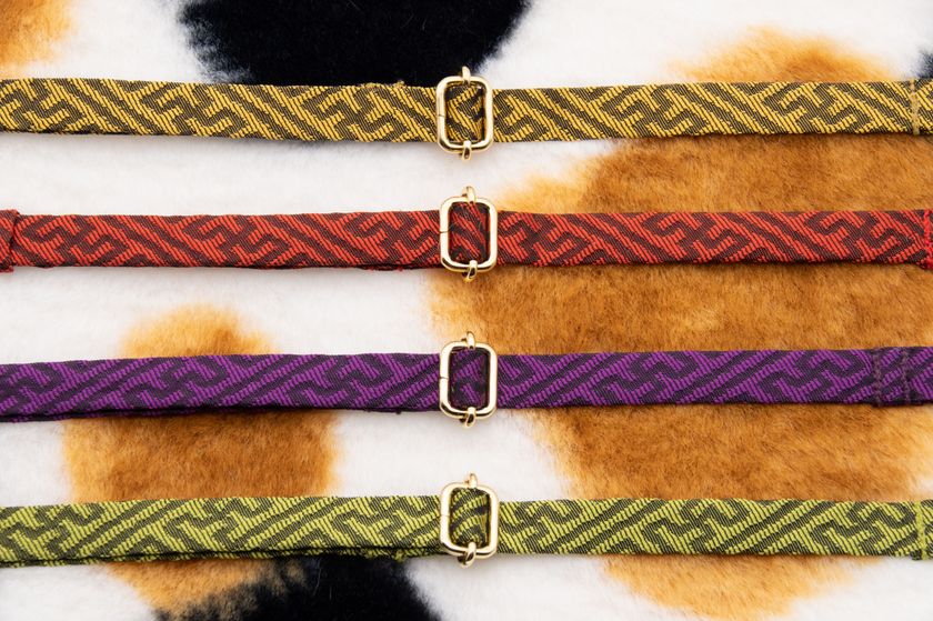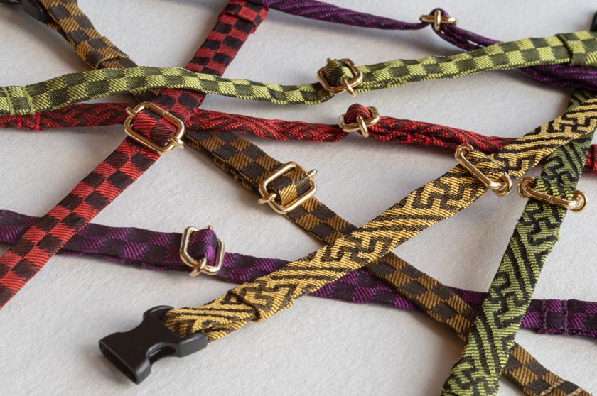 日本を代表する絹織物として名高い西陣織。その特徴は多様な色糸の組み合わせと、精密に織り上げる文様の美しさにあり、古来から高貴な人物の装束や調度品として用いられてきました。miacoの猫首輪には、市松や紗綾形の模様を使用。それぞれ、繁栄、長寿といった意味があります。また、生地は機織り機を使った手織りになります。