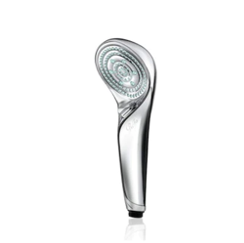 リファのシャワーヘッド。小さなバブルが肌に優しく汚れを取り除く。お風呂で体を温めることでその後の放熱を促す。選べる4つの水流のうち、ミストの浴び心地が特におすすめ。勢いのある水流など、モードを使い分けることで、家族全員で使える。