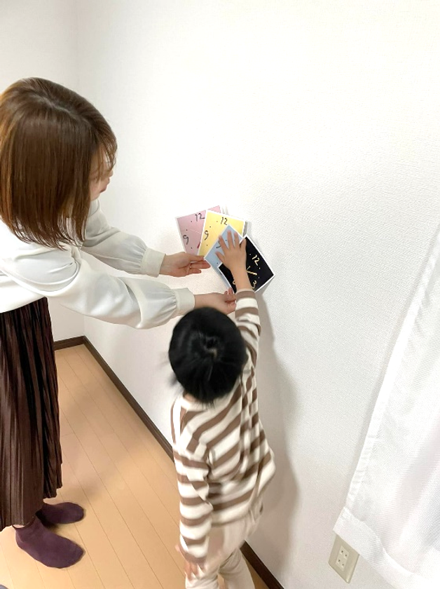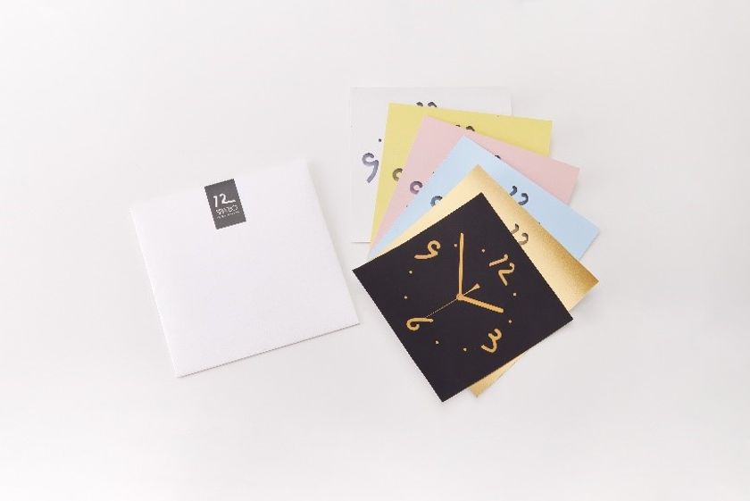 そこで「選ぶ楽しみも贈る」をコンセプトに、お贈り先様に置時計・掛時計の2種類と、7色のカラーの組み合わせを選んで頂けるギフトセットを作りました。贈られた方には見本セットをお送りし、それを使って実際のお部屋に合わせて時計をお選び頂きます。見本セットには、一目でわかる時計の形と色のイメージ画像と、それぞれの色がもたらす心理効果や色言葉などを記載しており、大人でも子供でも選ぶ過程を楽しめる様にこだわりました。