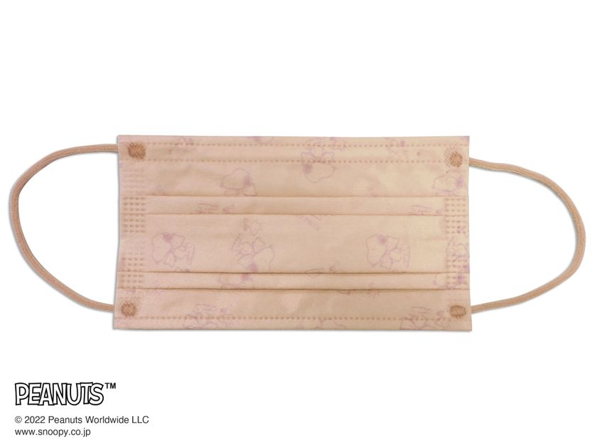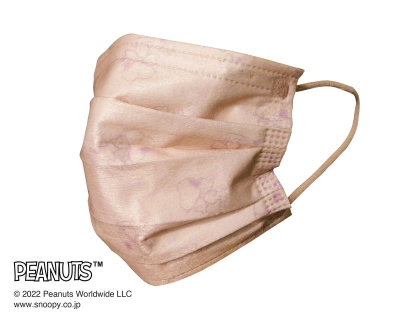 メイクをする感覚で着用でき、マスクがチークのような血色感や華やかさを演出。さらに微光沢のある生地がハイライト効果を引き出します。同系色でさりげなくプリントされたスヌーピーが、大人可愛い印象をもたらします。