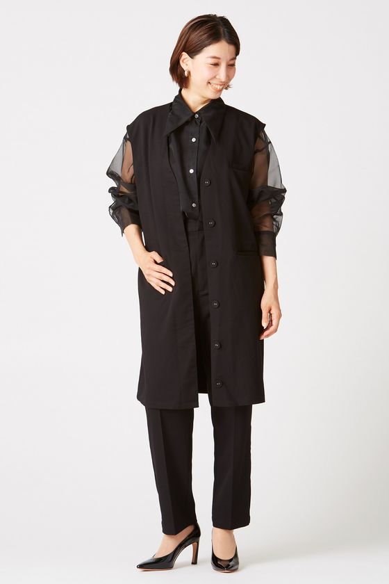コスメと聞くと、これまではふわふわキラキラしたイメージがありましたが、今はジェンダーにとらわれずそれぞれが個性を表現する時代。型にハマらずに自分の個性でいかようにも表現できるように、着こなし次第でシルエットに変化がつけられる1着になるよう仕上げました。