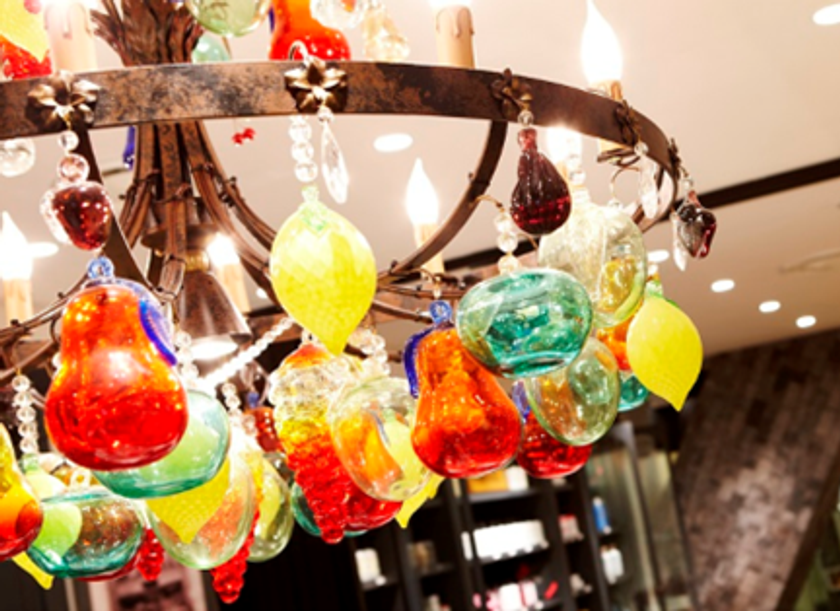 [写真]フルーツギャザリング全店舗に飾られている「フルーツシャンデリア」。心からのおもてなしを表現したフルーツギャザリングのストアシンボルです。