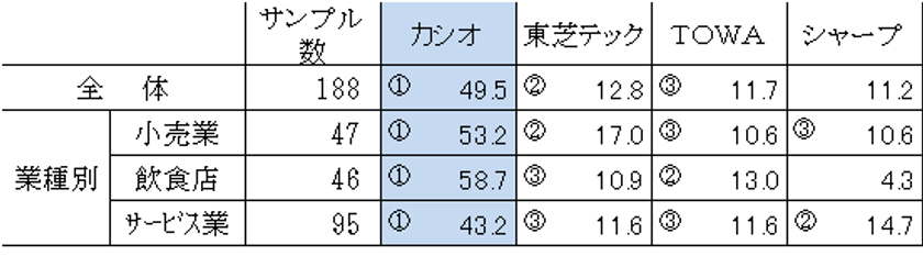 電子レジスター(*)「カシオ」のシェアがトップ。「2022年電子レジスター調査」
