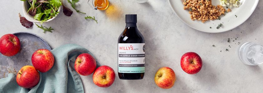 『Willy's Apple Cider Vinegar(ACV)』ブランドは2015年に英国で誕生しました。『Willy's ACV』の特徴はなんといっても“マザー”と呼ばれる、リンゴが自然発酵する際に発生する「酵母」をはじめとする善玉菌が“生きたまま”入っていること!