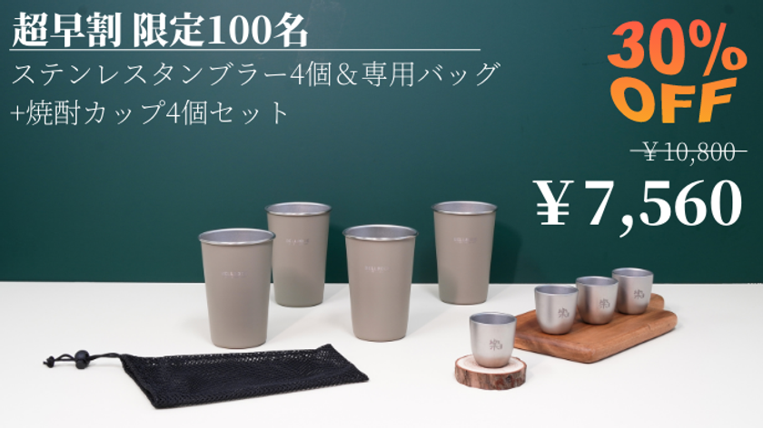 3.専用メッシュバッグ付きタンブラー4個と焼酎カップ4個セット 7,560円(税込・送料込)〜