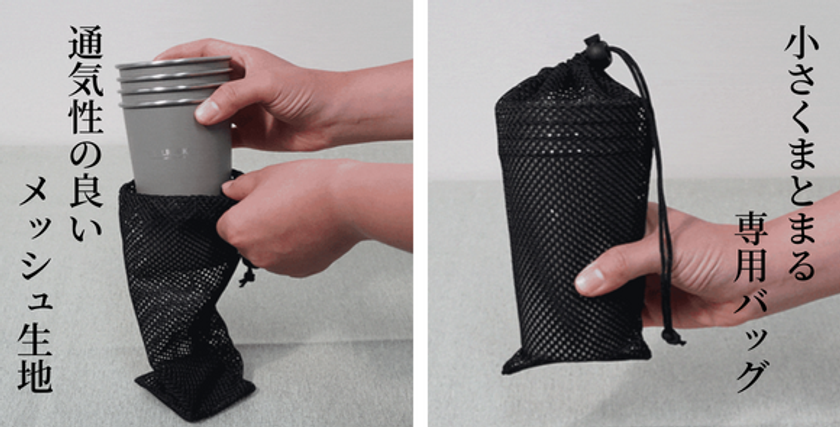 通気性の良いメッシュ仕上げのため、濡れたままでも収納できます。