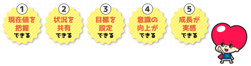 「みらぼ」で測定することで、(1)子ども自身の現在の力が分かる、(2)その力を子ども、保護者、指導者で共有できる、(3)成長に繋げるための目標設定ができる、(4)目標ができることで子どものモチベーションが上がる、(5)子どもの努力と保護者、指導者のサポートにより成長を実感できるようにしていきます。