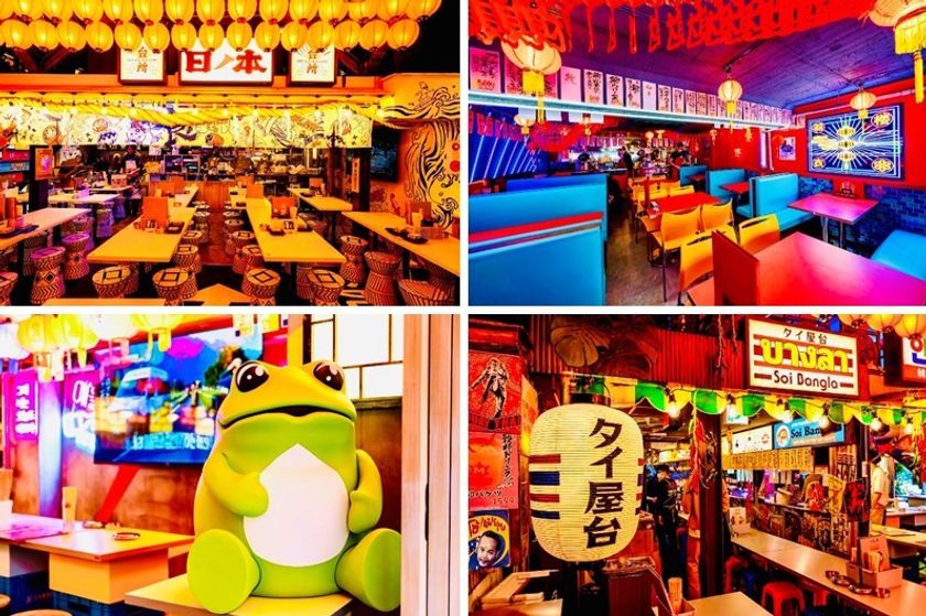 日本全国のご当地グルメが一同に介する「日ノ本」や、韓国屋台街で韓流飯「韓明洞」、新業態となるタイ屋台「バングラ」などのアジア専門飲食街。