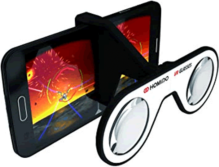 VRグラスをスマホに装着すると、360°のバーチャルリアリティを実現します。