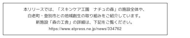 10年にわたる、北海道白老町との地域創生プロジェクト廃校跡地を活用した工場&ガーデン施設『スキンケア工園(こうえん)ナチュの森』が完成
