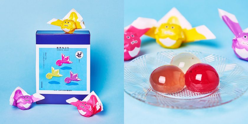 金魚ねぶたをモチーフにした、カラフルな金魚の包み紙が可愛らしい一口サイズのゼリー。青森県産の果物を中心に、アップル、カシス、巨峰の果汁をふんだんに使用しました。昔ながらの風船型ゼリーで、楊枝で刺せば、まんまるゼリーがぷるんとお目見え。ジューシーで爽やかな味わいは、暑い日のおやつにぴったり。