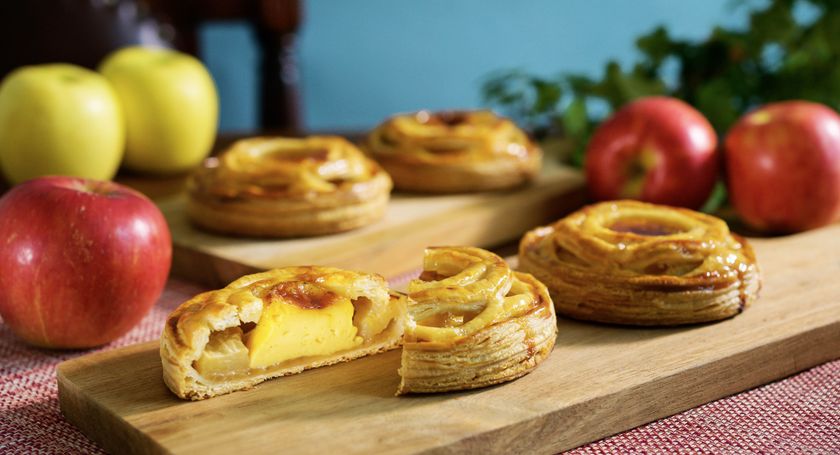 昨年の11月にクロワッサン専門店「Ailes」のブランドを立ち上げたことにより、クロワッサンの技術と設備を応用することが可能となり、ようやく「アップルプリンパイ」の販売が実現しました。