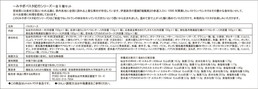 商品名 :みやぎパスタ紀行シリーズ全6種セット