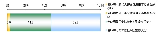 ■青果を購入したあと「廃棄」する割合の調査では「使い切る」「少しだけ破棄する」で96.8%