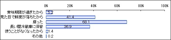本調査で「青果を廃棄する目安」を複数選択で聞いたところ、「腐った」(68.1%)時に次いで、「見た目で鮮度が落ちたから」(41.4%)、3番目に「長い間冷蔵庫に保管していたから」(36.9%)と続きます。青果物の「鮮度」が少しでも長く保たれれば、前設問で明らかになった「使い切る」消費者意識の高さと相まって「廃棄」される青果物がさらに削減できると考えられます。
