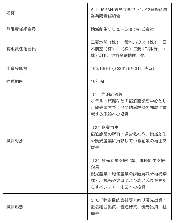 「ALL-JAPAN 観光立国ファンド2号」への出資について