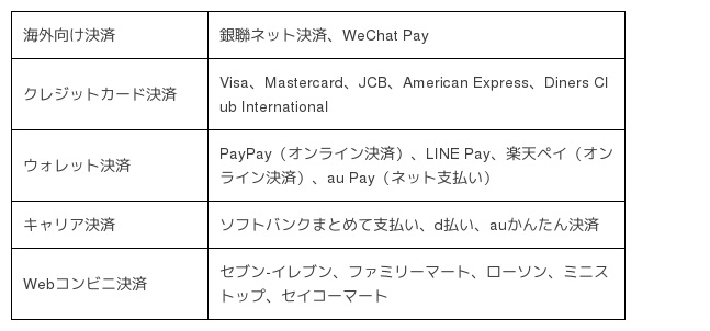 ■ 「Shopify」でSBPSのオンライン決済経由で利用できる決済手段
