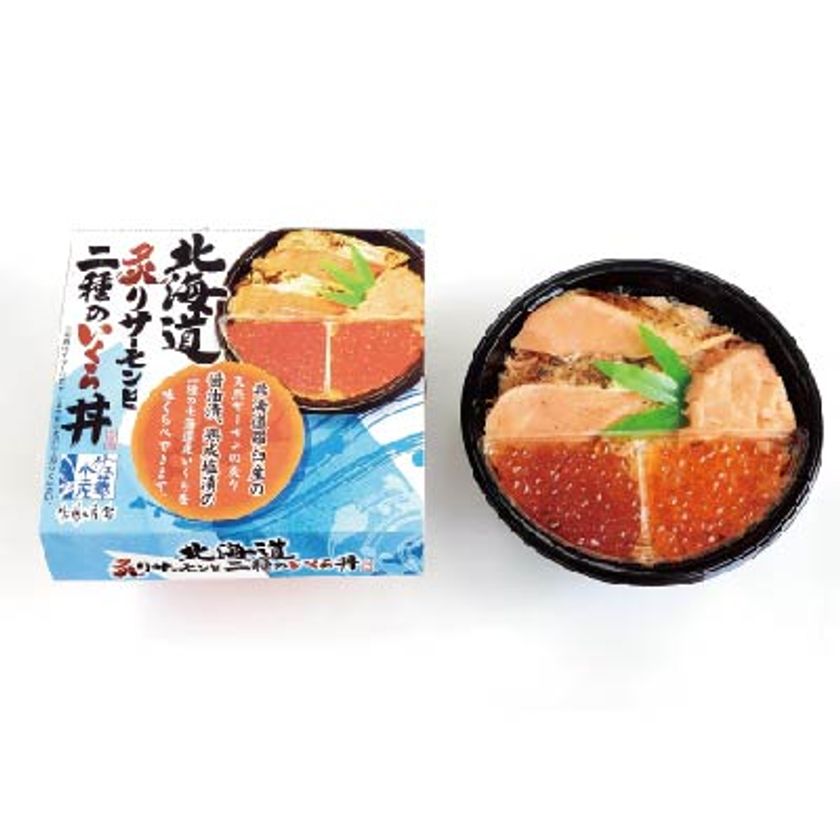 北海道羅臼産の炙りサーモンと、北海道産のいくらの醤油・塩漬けの二種の味くらべが楽しめる親子丼です。